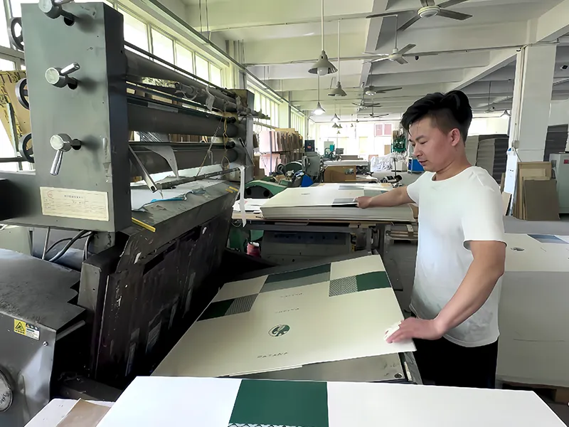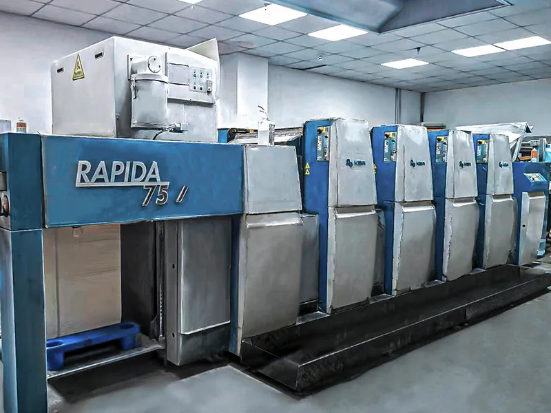 ■MESIN:Dilengkapi mesin canggih, kalebu mesin cetak KBA Rapida 75E (6 warna) lan KBA Rapida 75 (4 warna) buatan Jerman, bebarengan karo creasing, die-cutting, lan peralatan pendukung liyane.