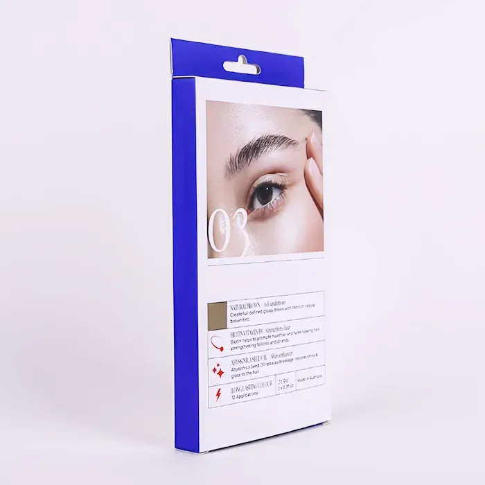 Kothak Hang Tab sing dicithak iki dirancang lan diprodhuksi dening Doyoupacks kanggo Merk Kecantikan Pasar, sing nduweni kehadiran sing kuat ing saluran ritel pasar massal. Nalika pabrik kita pisanan ngrancang struktur kemasan, kita nganggep skenario adol, lan produk ing njero yaiku pena warna alis. Kothak Eceran Gantung adat minangka pilihan sing paling cocog, amarga cocog kanggo ditampilake digantung saka pancing ing rantai toko, kalebu toko obat lan toko sing fokus ing kaendahan. Kajaba iku, kapasitas tahan beban sing stabil lan desain bukaan kaping pindho ndadekake cocog kanggo kemasan sing entheng, set multi-item kayata pulpen alis.